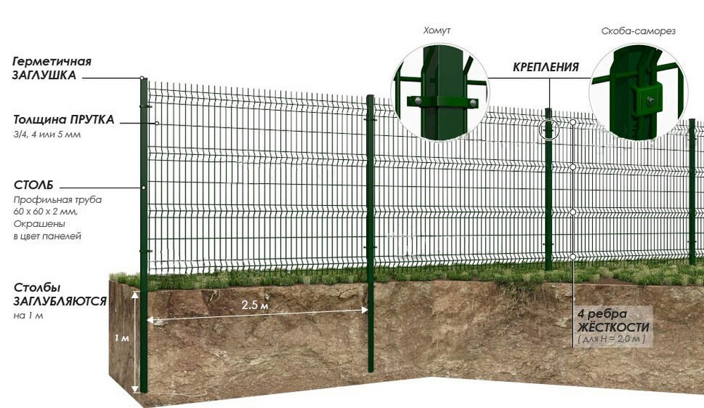 Прочность и долговечность. Забор из 3D сетки очень прочный и хорошо выдерживает ветер, дождь и снег.