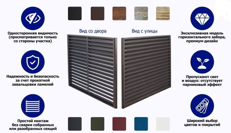 Жалюзийные ограждения — это конструкции из наклонных или вертикальных планок, которые частично закрывают обзор и обеспечивают вентиляцию.