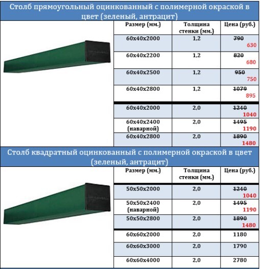 Столбы: 60/40 мм, 750 руб.
